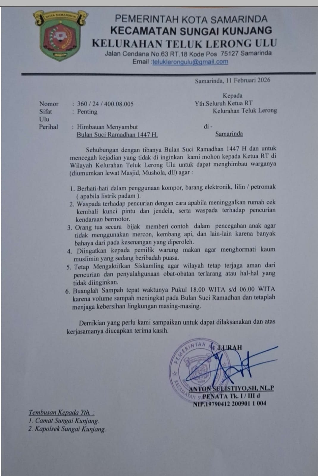 Selamat datang di Website Resmi Kelurahan Teluk Lerong Ulu